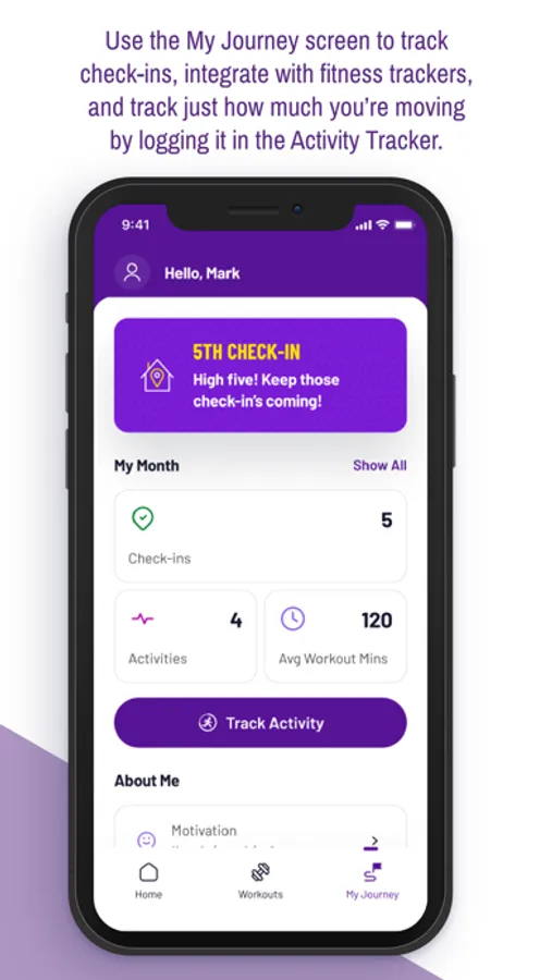 Activity Tracking with My Journey: Check out the My Journey screen to track check-ins, integrate with fitness trackers like Apple Health, and track just how much you’re moving by logging it in the Activity Tracker.