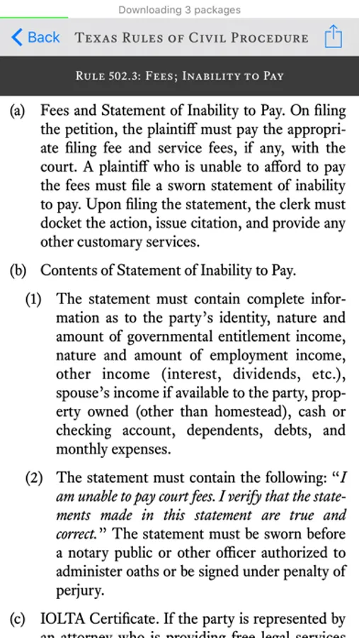 With this App you can bookmark and email specific sections of codes, rules and statutes -- right from the app! App also gives you free Google Scholar case law in certain areas by pressing an “annotation” button.