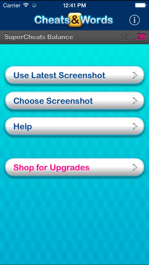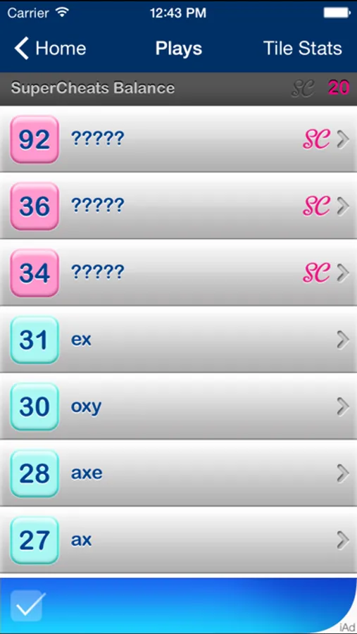 Cheats and Words is ad-supported allowing you to find stellar words for free. To reveal high scoring words you can use SuperCheats. You are given a complimentary balance of SuperCheats to begin with, but must purchase them after your initial balance runs out. You can also pay to unlock the app which removes ads forever and gives you unlimited SuperCheats.