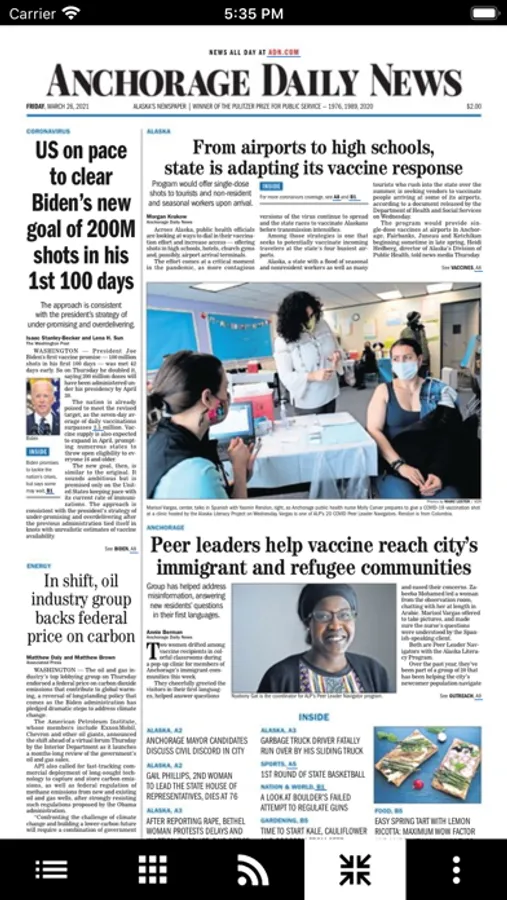 Alaskan news at your fingertips, with every article and picture intact, just as you would read in the printed newspaper edition of the Anchorage Daily News.