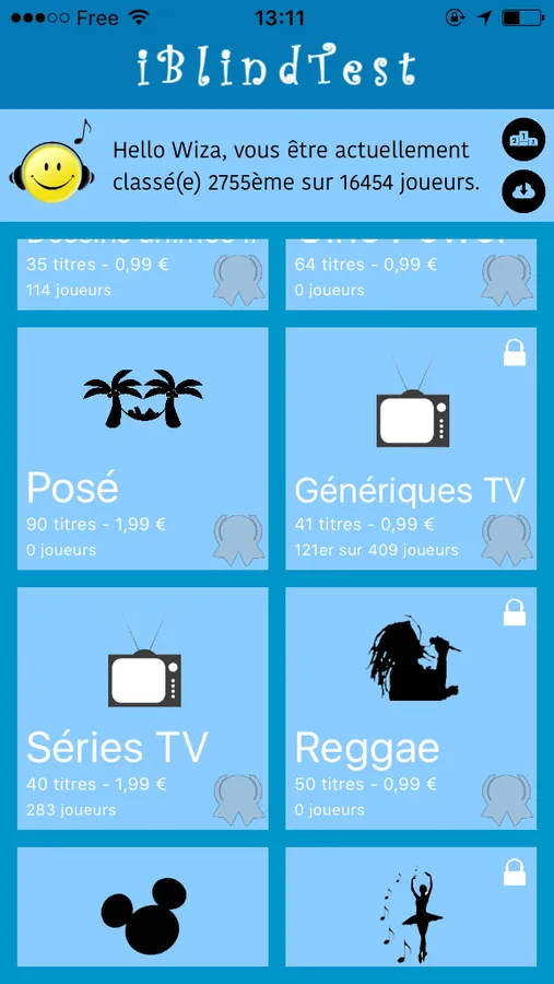 iBlindTest references more than 500 titles and 26 playlists, find your favorite themes and challenge musical cultures: