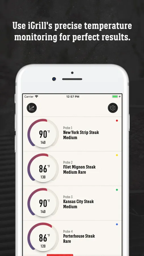 ● Custom settings allowing you to name your device and set the probe color indicator to make keeping track of your devices simple