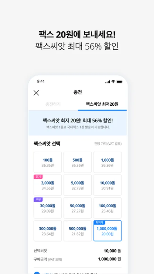 - 팩스발송: 팩스씨앗 구매 시 최저 20원! (vat별도)