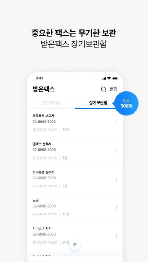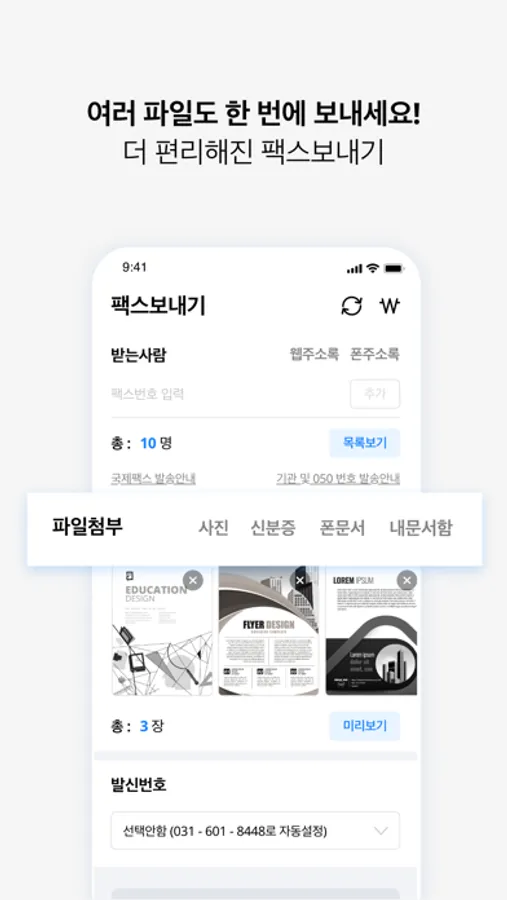 - 휴대폰 주소록의 번호로 팩스 발송 가능