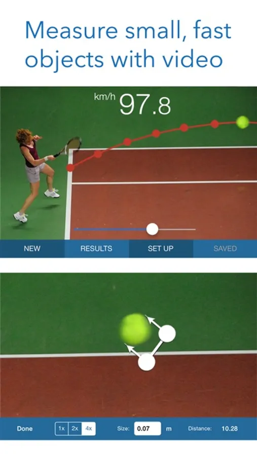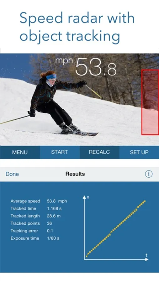 An additional speed tool records and processes a video, which enables SpeedClock to track small, fast object, such as flying balls, that can be difficult to catch with regular motion detection. It also calculates additional parameters like acceleration.
