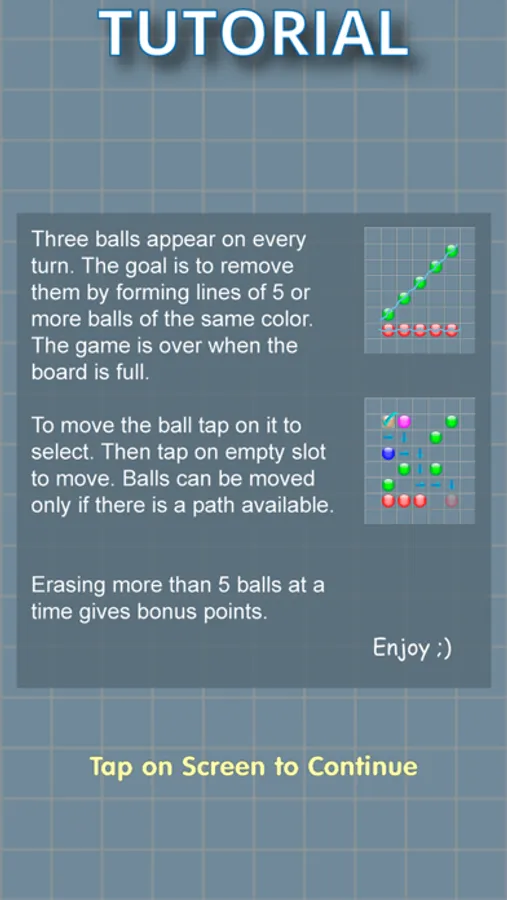 The gameplay and the rules are very simple yet the game will keep you playing for hours and hours. The goal is to clear the board by moving the balls of the same color to form horizontal, vertical, or diagonal lines of 5 or more. The ball can be moved only if there is a path available.