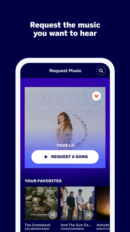 - Request songs you want to hear. Browse a location’s playlist, and request your favorite song to play next.