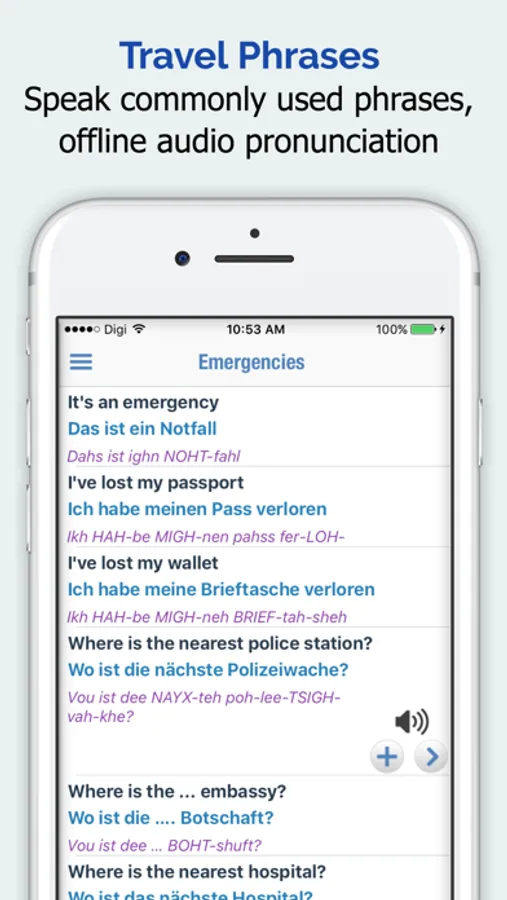 • Phrase book, Phrase of the day and Phrase Card helps to speak common phrases