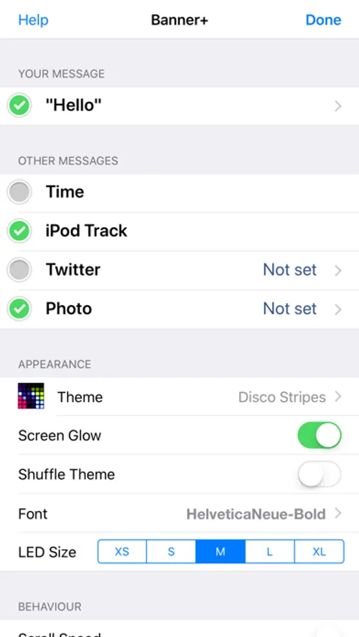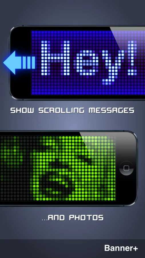 Banner+ displays a scrolling message and photos on a realistic LED dot-matrix display using your iPhone/iPod touch or iPad.