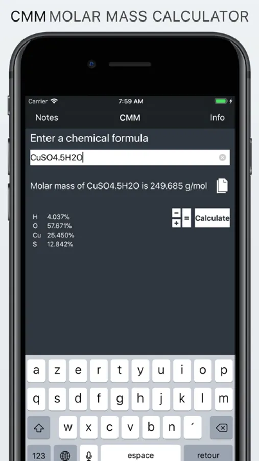 This application calculate for you the molar mass of a chemical compound.