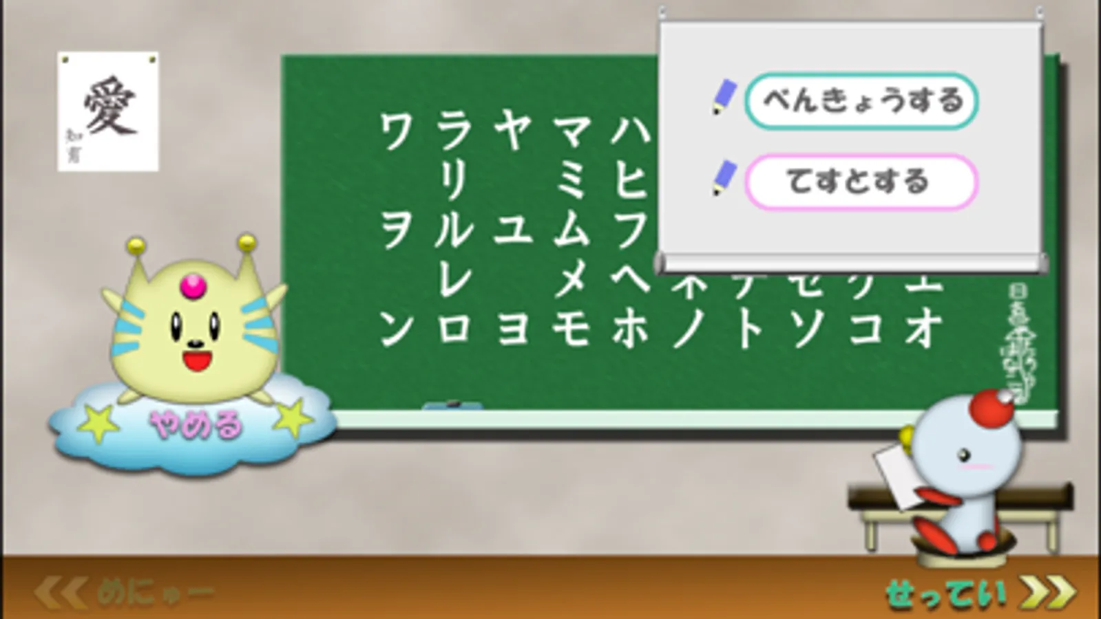 カタカナの文字・読みをフラッシュカードで覚えるアプリです。