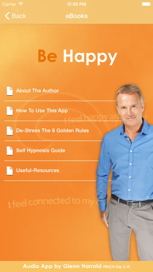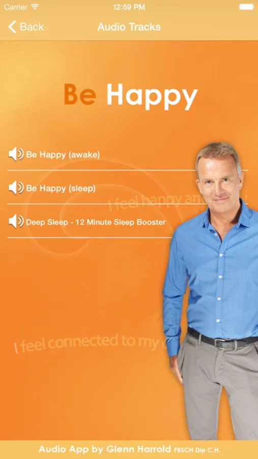 'Be Happy’ is a superb high quality hypnosis recording by the UK’s best selling self-help audio author Glenn Harrold. It will help you connect with a feeling of inner peace, joy and happiness while you are in a deep state of mental and physical relaxation.
