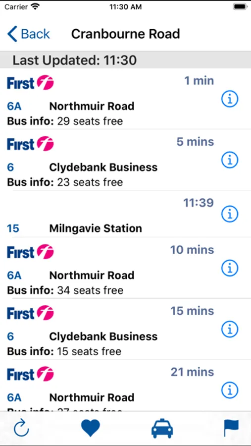 - Departure boards showing next scheduled buses at every stop in Great Britain! Live bus times are shown in Edinburgh, Glasgow, Aberdeen, Dundee, Angus, Ayrshire, Fife, Lothians, Scottish Borders, Inverness area and Orkney where available,
