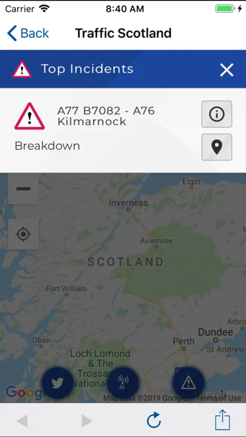 For the strategic road network, the app provides direct access to Traffic Scotland. This section features: