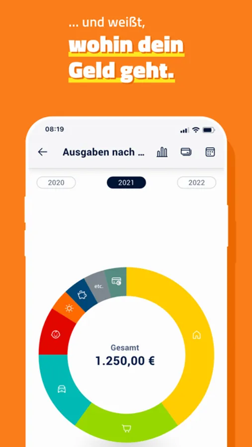 - automatische Auswertungen deiner Einnahmen und Ausgaben in übersichtlichen Grafiken
