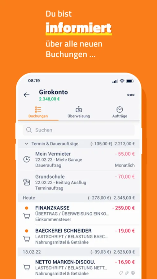 - Push-Nachrichten bei eingehenden und ausgehenden Buchungen