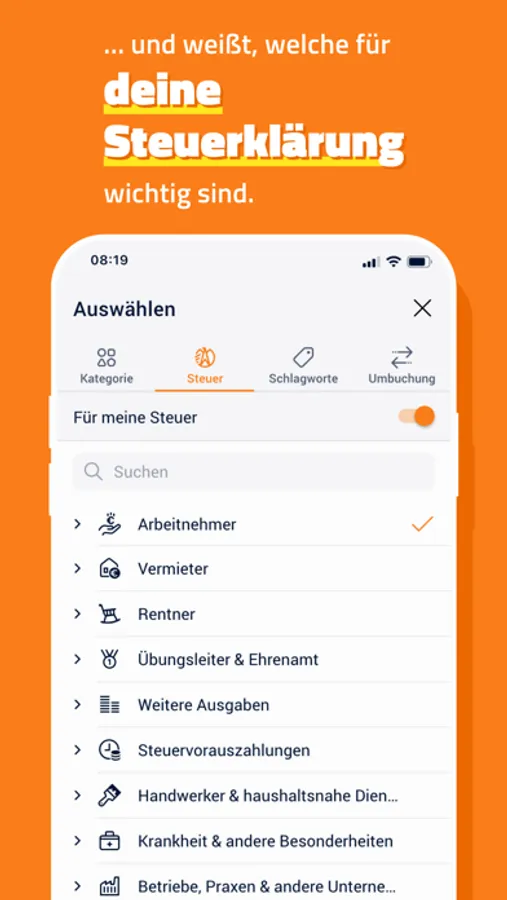 - automatische Prüfung deiner Buchungen auf ihre steuerliche Relevanz