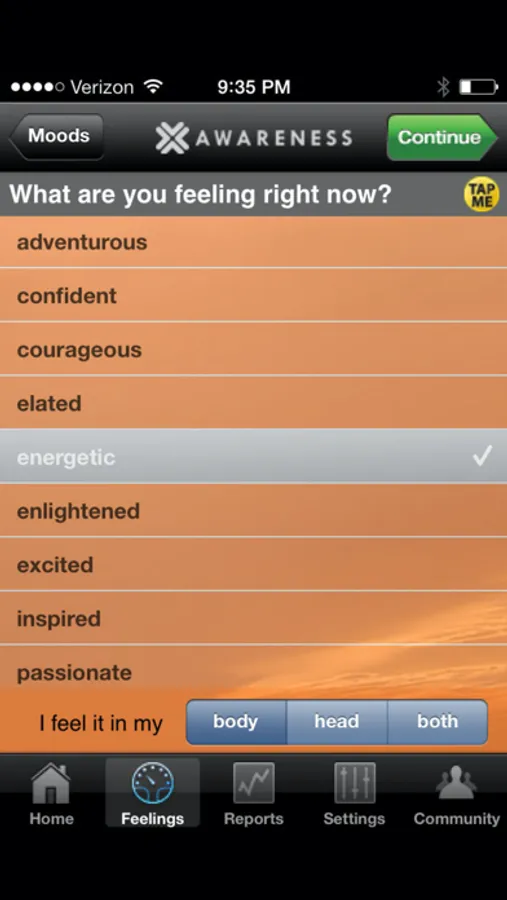 The AWARENESS application is the first tool to use mobile technology to randomly intercept your daily routine, and prompt you to get in touch with what you are feeling; taking you out of your worries and bringing you to the present moment. Throughout the day, on a schedule you configure, a gentle "gong" will go off and the phone will prompt you to record what you are feeling in the current moment. It will then lead you in a brief meditative exercise that you can do wherever you are, to bring you back to the present moment. It will ask you to record what you were doing when you experienced the feeling, and then leave you with an inspirational quote that relates to the feeling you recorded.