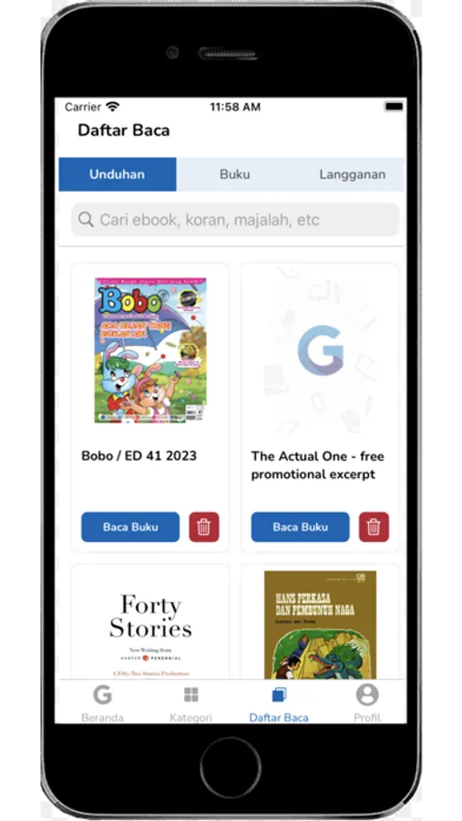 Read the digital version of most popular magazines, bestseller books, and newspapers from Indonesia, Philippines, Malaysia, Singapore, Japan, India, Brazil, and UK.