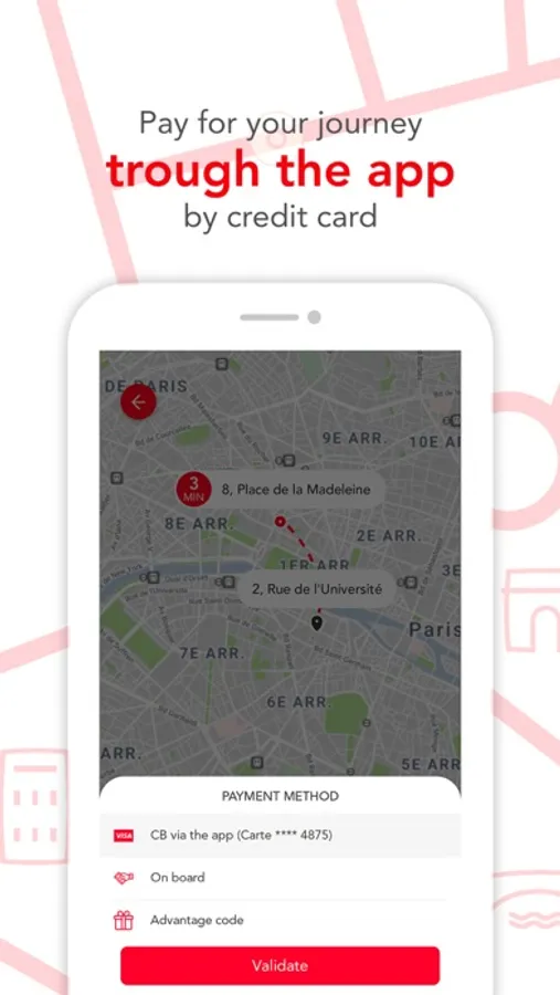 o Choose your payment method directly from the app (on registered credit card) or on board with your driver