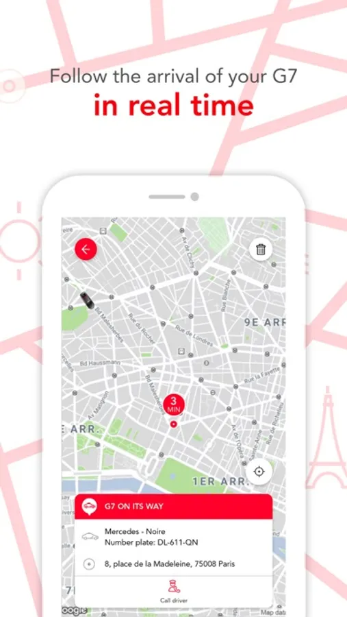 Order your taxi in 1 click on your smartphone and access the 9,000 taxi drivers selected and trained to G7 service quality standards.