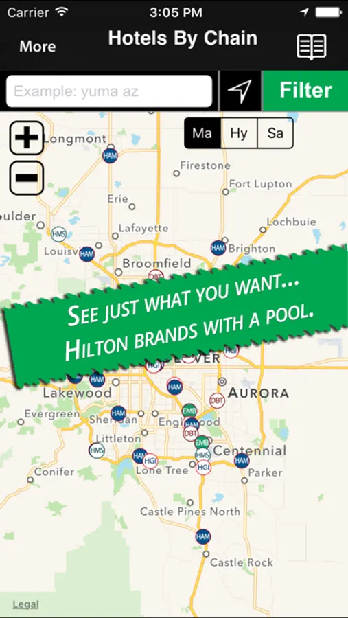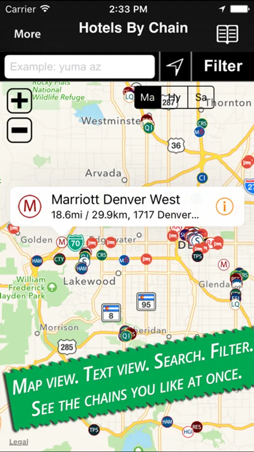 - Easily find favorite chains with map filters or a manual lookup by chain. Like our website, no one else lets you find Ritz-Carltons or Motel 6 together. The choice is yours.