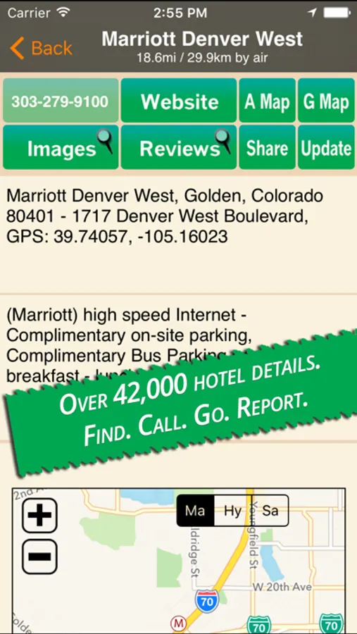 - REAL hotel phone numbers. The data is on the app so you don't have to wait or hunt for phone numbers.