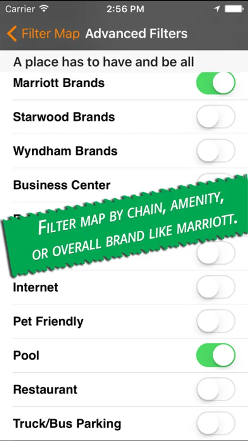 - Filter by amenity. Look for a pool, restaurant, internet, fitness center, business center, extended stays, pet friendly or truck/bus parking.