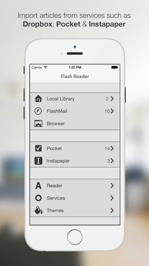 Services such as Instapaper, Pocket, website article saving and certain file-specific document conversions have limits and might require the Flash Reader Pro upgrade, which is a permanent one-time payment that unlocks all features of the app.