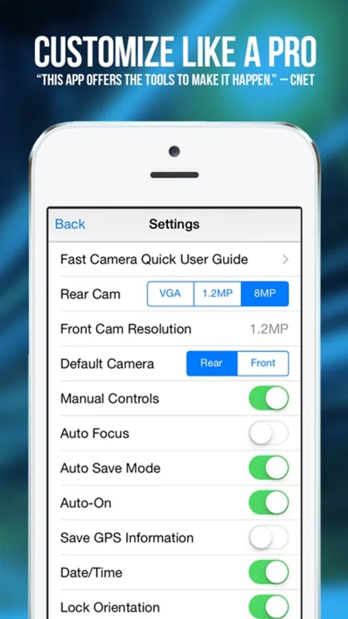 "If you want to take the perfect pic, set up group photos on a timer, or make stop-motion videos, this app keeps the interface simple, but offers the tools to make it happen." - CNET