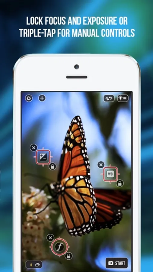 -Auto Focus/Exposure lock on double-tap. Manual controls on triple-tap.