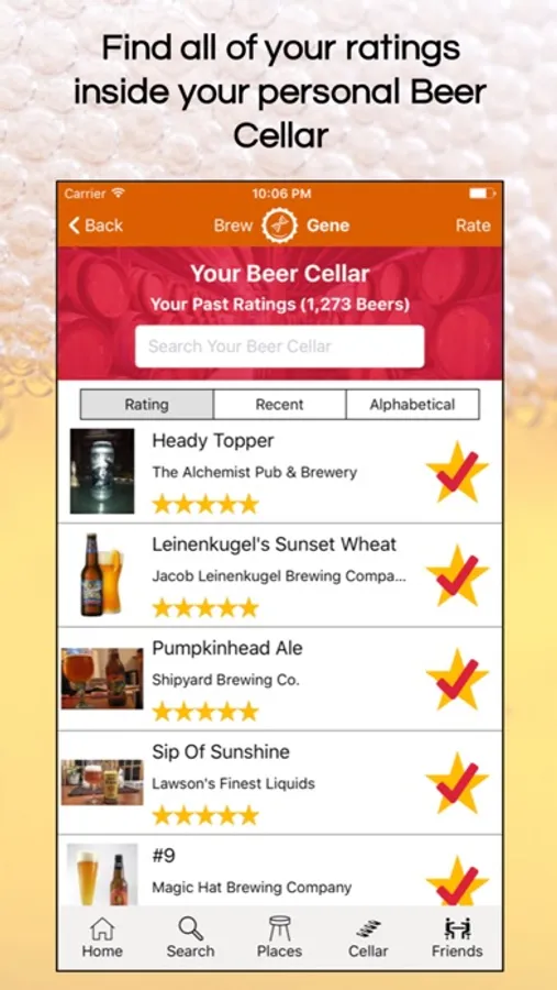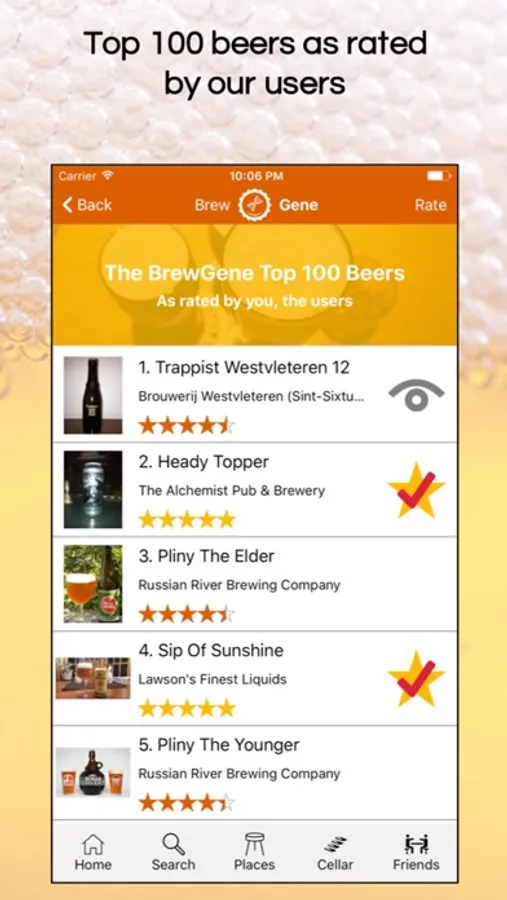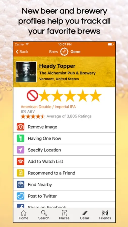 The core of BrewGene is an easy-to-use and comprehensive beer tracking feature. Rate and tag what beers you're drinking, where you're having them, and how much you like them. You can also write detailed tasting notes, and create a 'watch list' of rare or favorite beers. Now, you'll never forget that great beer you tried last week, and you'll never accidentally order a bad beer twice.