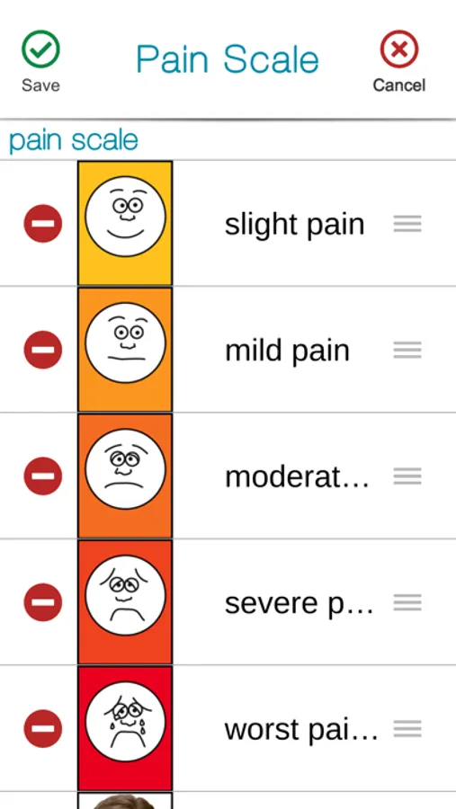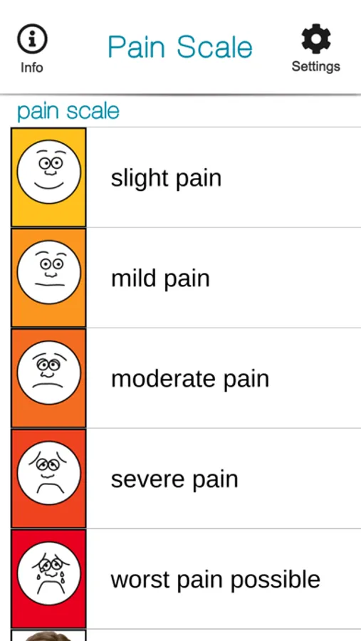 SmallTalk Pain Scale provides a library of pictures you can tap that speak out loud. This includes pain descriptions and images from the Wong-Baker Faces Pain Scale, as well as icons representing human anatomy.