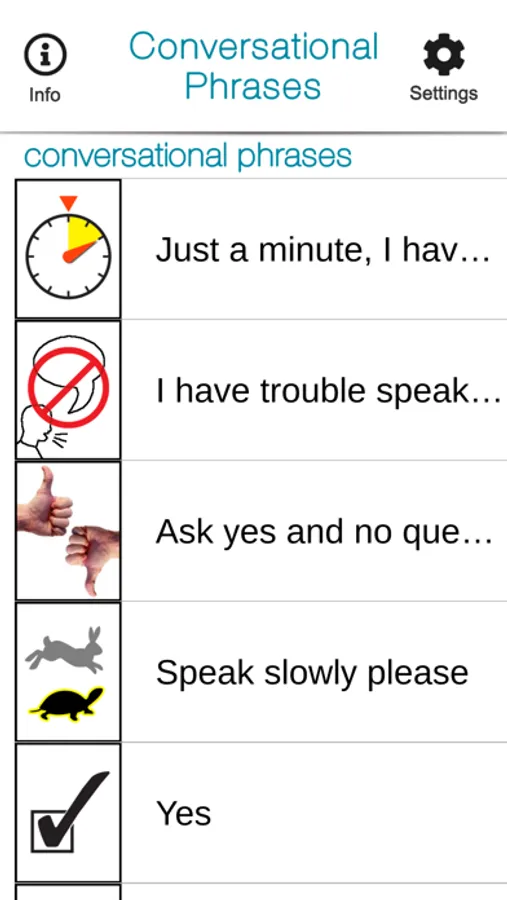 SmallTalk Conversational Phrases provides a library of pictures you can tap that speak out loud. This includes common words and phrases like greetings, responses, requests, and statements on well-being. It’s perfect for conversing with friends, relatives, and others.