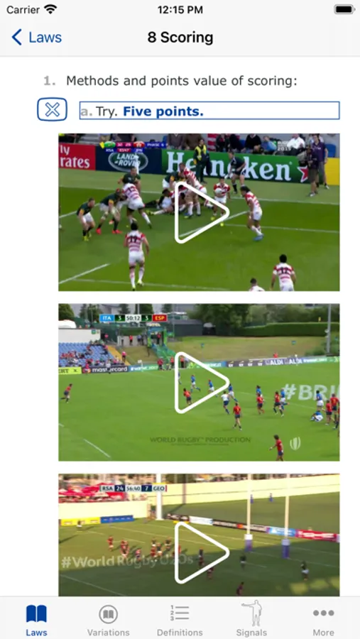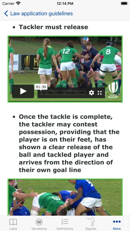 With this app you can watch video examples to build your understanding of how the World Rugby Laws of the Game are applied on the field of play. With over 300 videos, this app includes information on the 21 laws, as well as the variations, law definitions, and law application guidelines. Additionally, all referee signals are detailed in words, pictures and video.