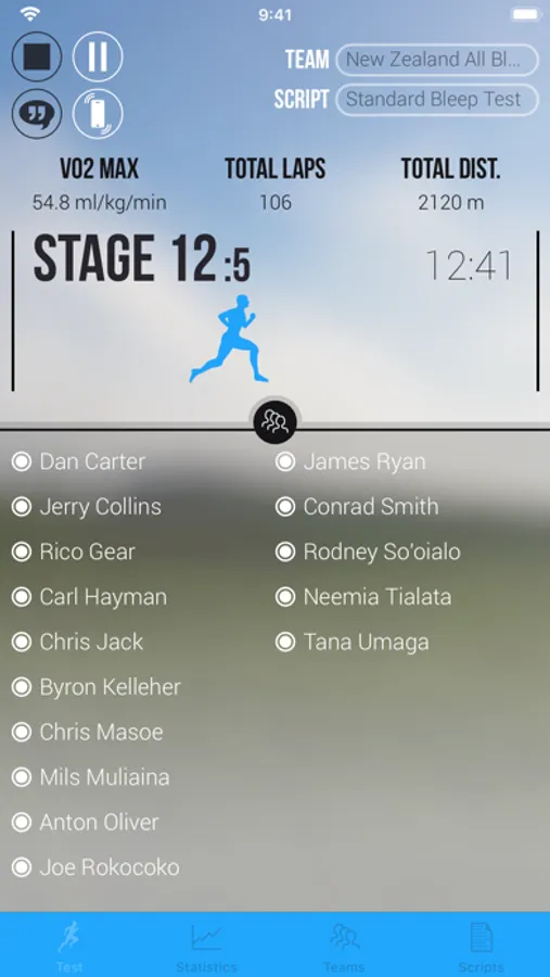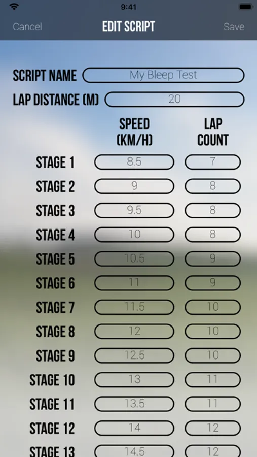 ‣ Create your own custom bleep test using the scripts tab and run any type of bleep test designed for any sport.