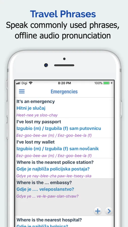 • Phrase book, Phrase of the day and Phrase Card helps to speak common phrases