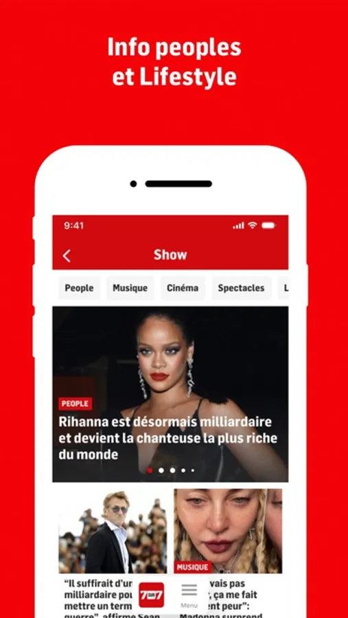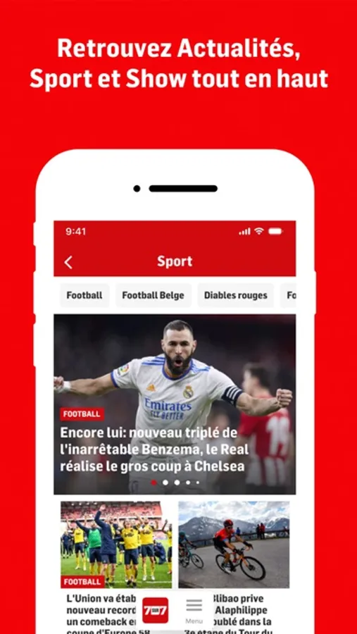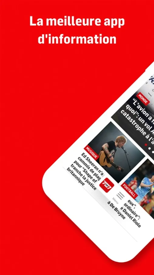 Tout en haut de notre application repensée, vous pouvez accéder en un clic aux dernières infos et vidéos, aux actualités Showbiz, Sports, à toutes les actualités et également à notre rubrique Lifestyle. Information urgente? Nous vous tiendrons informés en temps réel via nos notifications gratuites sur smartphone.
