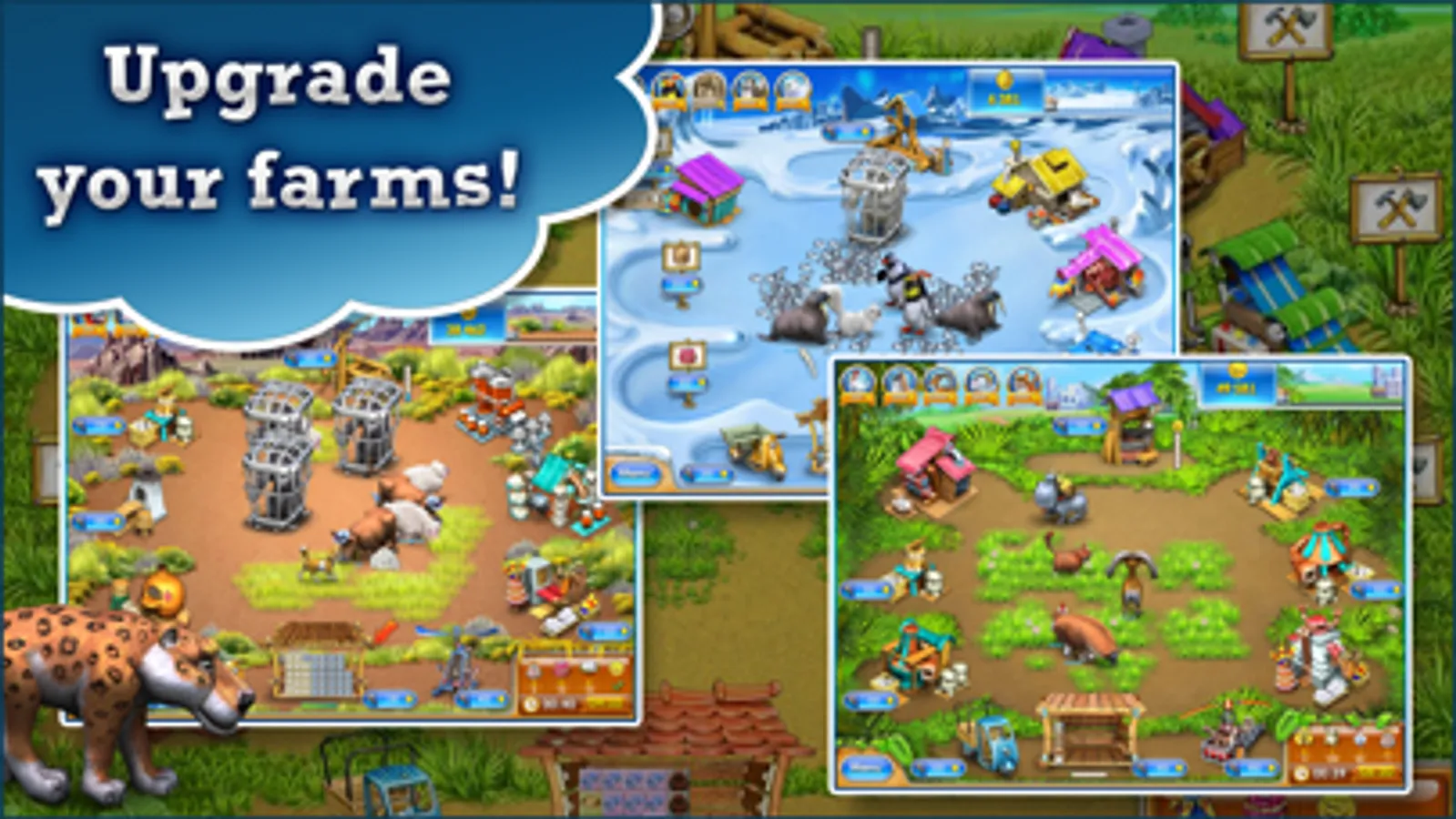 The Frenzy goes global as you tackle 95 fast-paced levels in Africa, Russia, the Wild West, an untamed jungle and more! Feed over 30 exotic animals such as walruses, penguins, and llamas while protecting your farm from dangerous jaguars, lions, and bears!