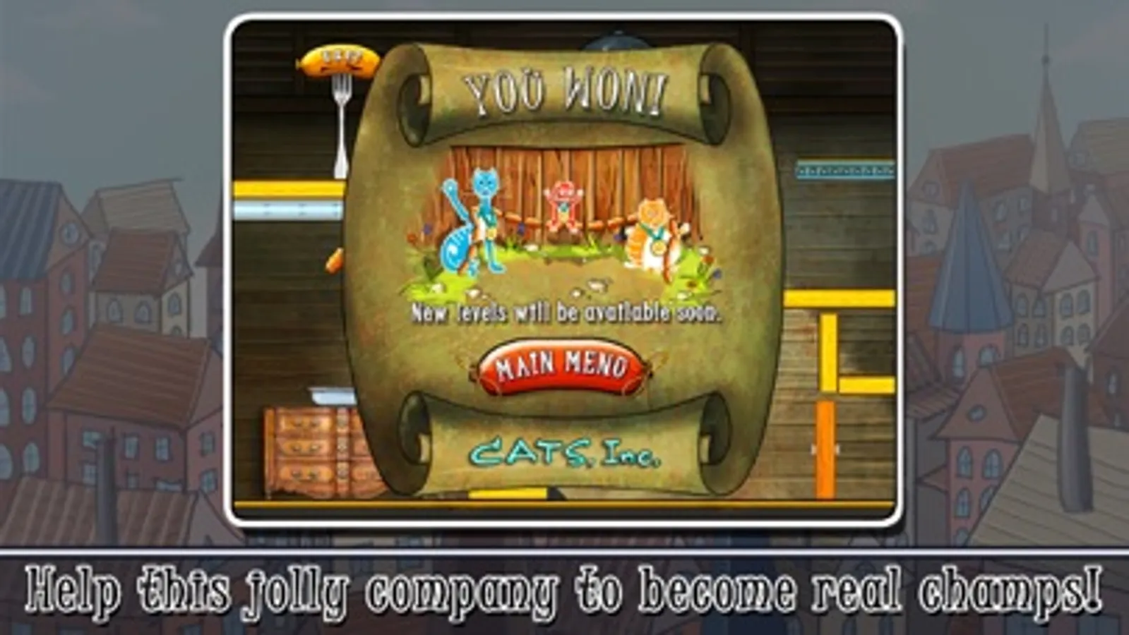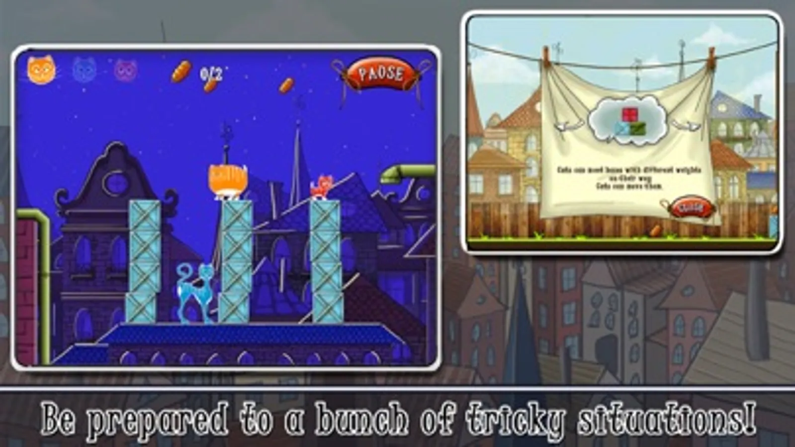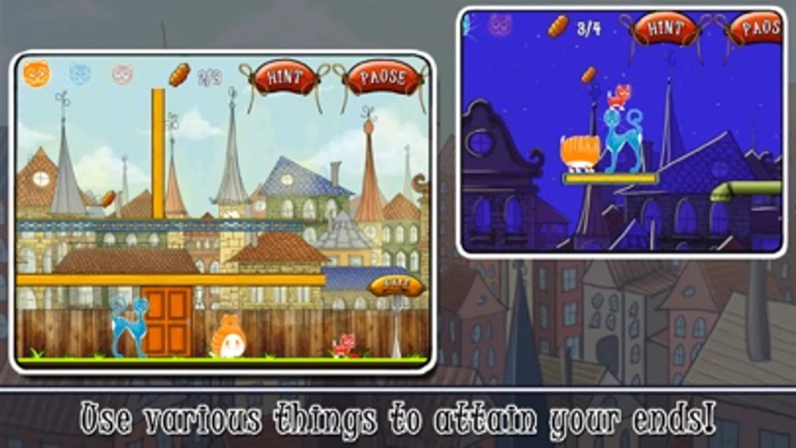 In this physics-based puzzle game your goal is to get the cats over to the next levels, collecting sausages, and overcoming obstacles. Each of three cats has special abilities, and you will need to figure out which one's should be used.