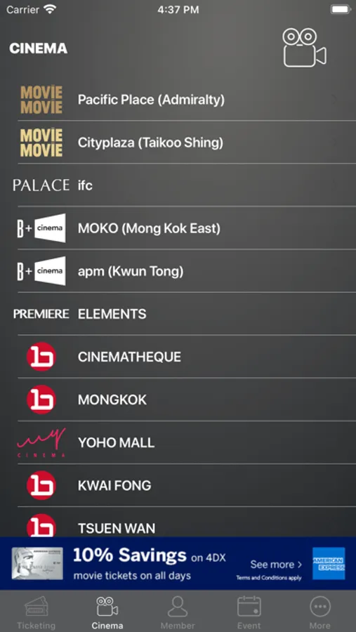 - 提供多款戲票優惠 ,包括小童、學生及長者戲票優惠、bc VIP會員優惠、MOViE MOViE 會員優惠、美國運通卡折扣優惠及星期五買一送一優惠