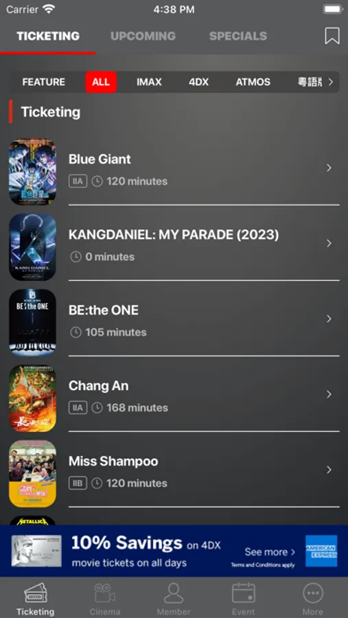 • Provide various ticket discounts, including Children, Student and Senior ticket discount, bc VIP membership discount, MOViE MOViE membership discount, American Express discounts and Friday Buy one Get one Free offer