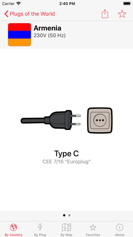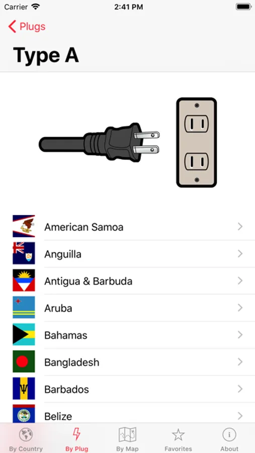 This app contains information about wall plugs, sockets, and voltage in over 250 countries and regions. Also features an easy to use navigation, free text search and option to save your favorite destinations. Each plug type and the socket are illustrated with clear, sharp images that you can share with friends.