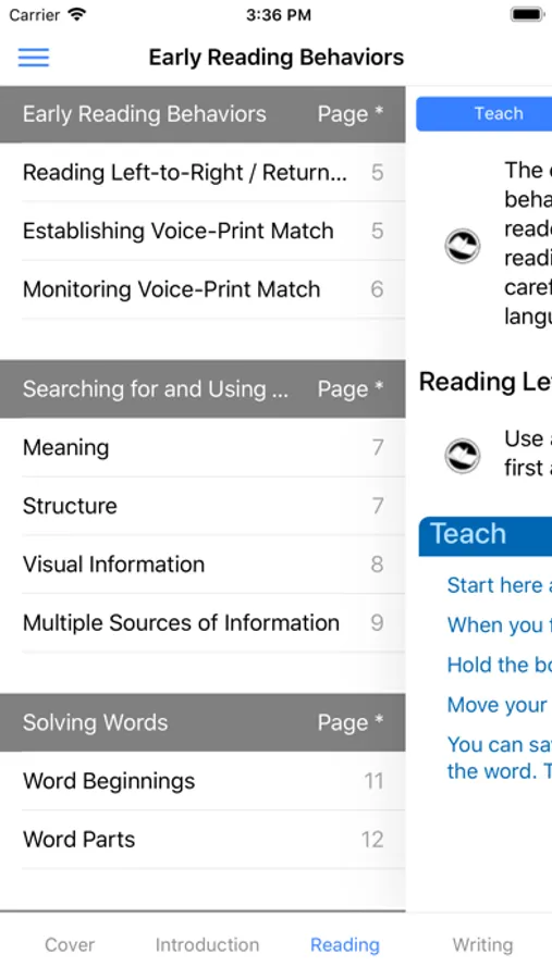 The Fountas & Pinnell Prompting Guide 1 is an easy-access tool that you can use to enhance your teaching power in guided reading lessons; intervention lessons; shared reading; independent reading; reading and writing conferences; and dictated, independent, and interactive writing. If you are a classroom teacher, reading specialist, literacy teacher, Reading Recovery teacher, or literacy coach, you can use this app as a ready reference while working with students in several instructional contexts.