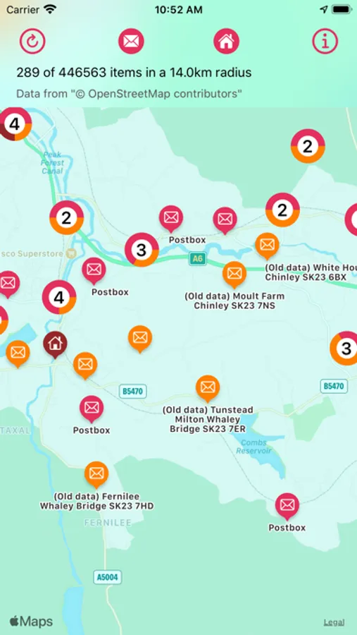 Postbox Finder UK helps you locate nearby postboxes and post offices in the UK using the GPS built into your phone. The coverage is extensive although there are postboxes that are not currently included in the app. If you do find missing postboxes, then please help by registering at https://openstreetmap.org and creating or updating incorrect information. Once the update is confirmed at OpenStreetMap, you will be able to use the refresh button in the app to download the updates.
