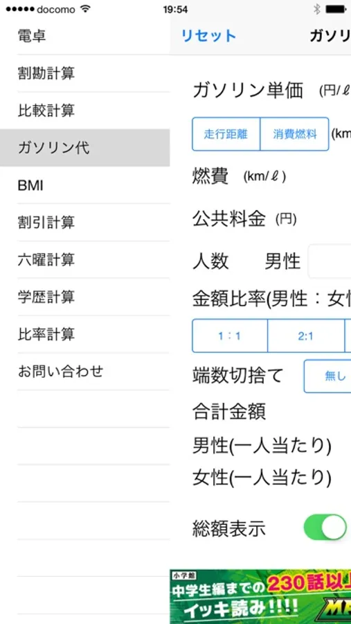 In this application program, the thing to switch two or more calculations by the tab is a possible computer.