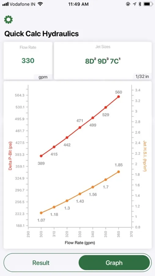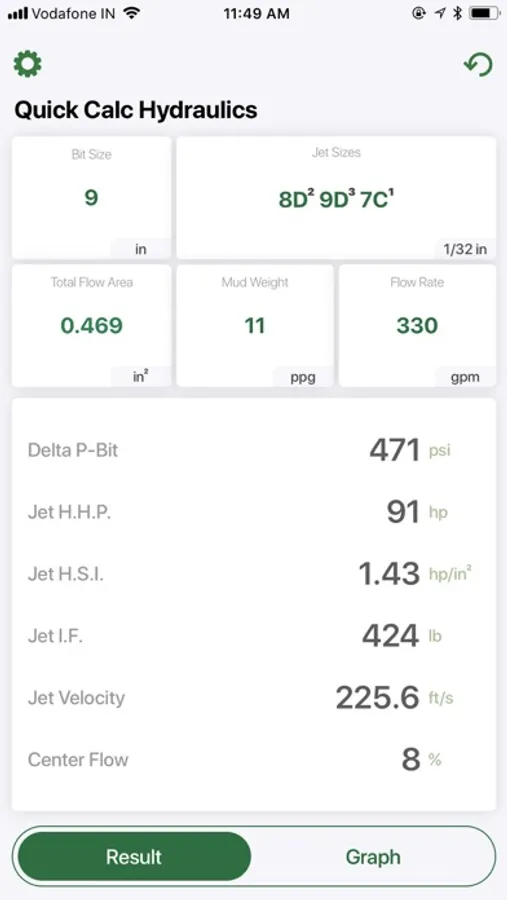 Quick Calc Hydraulics provides a snapshot of the hydraulic horsepower, jet velocity, and impact forces created at a jet nozzle orifice, which is installed in a drilling bit during earth-boring operations. The user provides numbers for fluid density, flow rates, TFA, and bit diameter, and Quick Calc Hydraulics then calculates the respective hydraulic parameters for conventional drilling fluids. Air, mist, and foam fluids are not supported at this time. The calculated results can be forwarded to anyone in the user’s contact list.