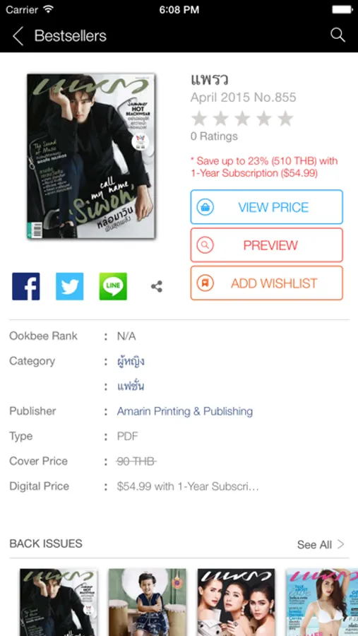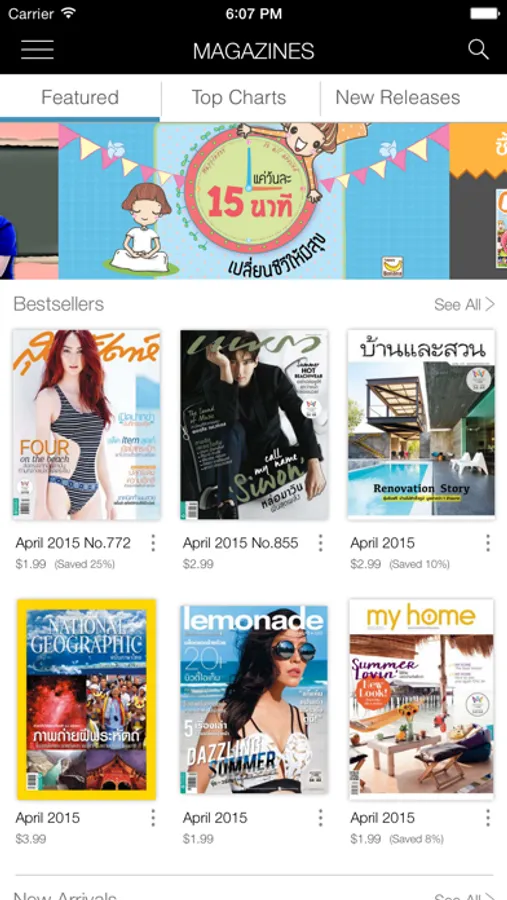 - นิตยสารในเครือ Amarin จะมีให้เลือกทั้งในแบบระยะสั้น 1 เดือน ($1.99),($3.99),($5.99)หรือในแบบระยะยาว 1 ปี ($22.99),($29.99),($46.99) ระบบจะทำการต่ออายุสมาชิกอัตโนมัติภายใน 24 ชั่วโมงเมื่อครบกำหนดระยะเวลา โดยยอดค่าบริการจะถูกเพิ่มเข้าไปใน iTunes Account ที่ลงทะเบียนใช้งานไว้