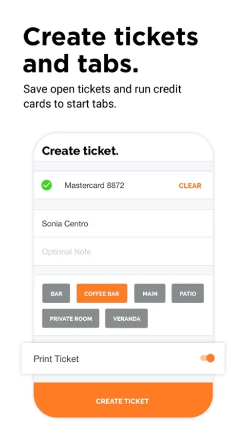 - Available in two payment themes: Terminal or Retail. Terminal theme: Enter a transaction amount and accept payment. Retail theme: Select from inventory, create tickets or open tabs, and accept payment.