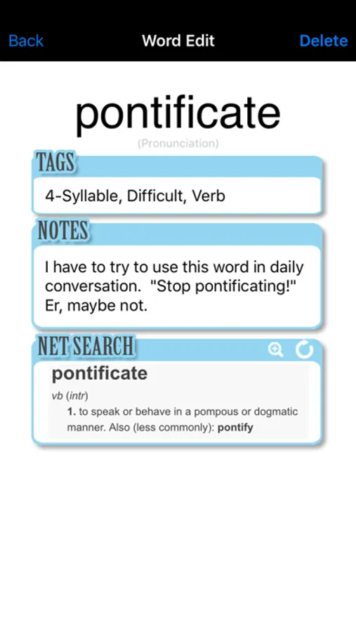 1. First, use the "Add a Word" feature to quickly add a word to the database. You can even enter the word's pronunciation.
